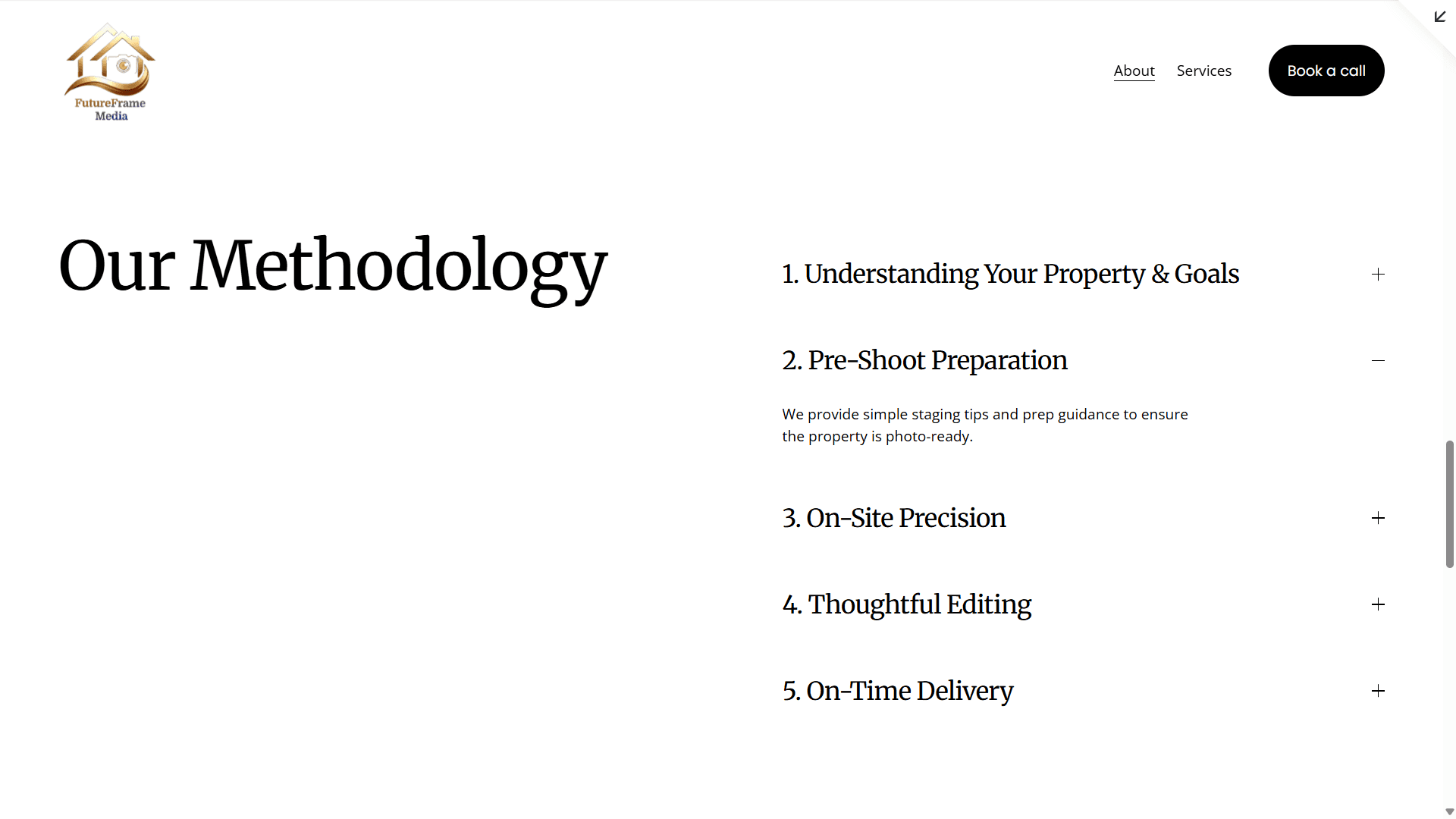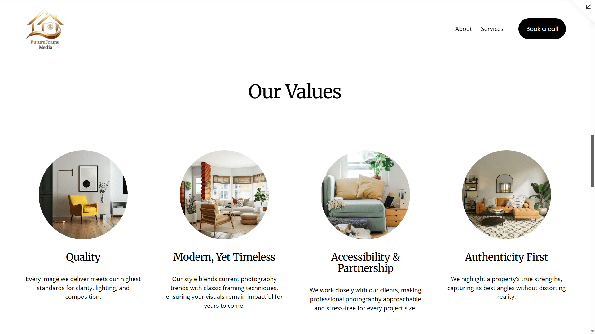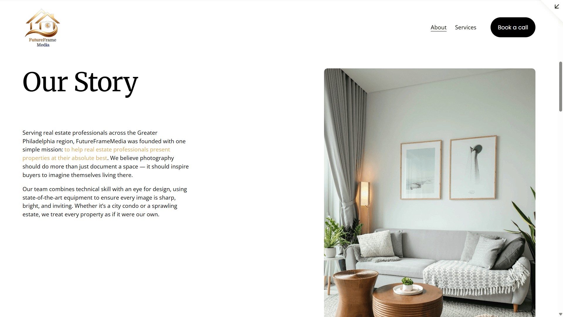 To design and develop an elegant, image-centric website that serves as a professional portfolio, highlights their unique services, and makes it easy for clients to request quotes and book photoshoots.